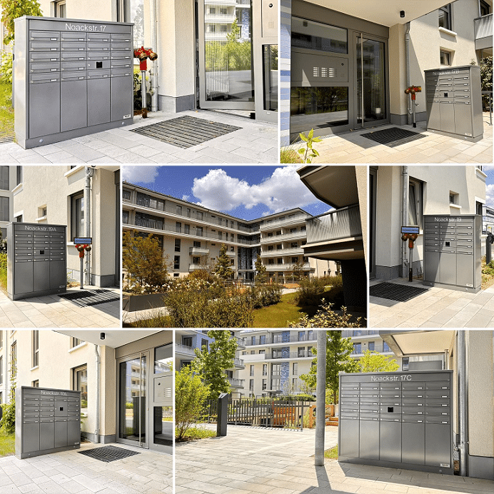 Sie benötigen eine kombinierte Brief- und Paketkastenanlage? Auch hierfür haben wir das passende Angebot für Sie. Sprechen Sie uns gerne an und teilen Sie uns Ihre Wünsche und Vorstellungen mit. Inspiration können Sie sich vorab in unserer Fotogalerie holen. Auch bei der Sanierung von Bestandsimmobilien können neben den Briefkästen auch Paketfächer integriert werden. Ähnlich wie bei Briefkästen mit Mauerdurchwurf, werden mit unserem bewährten 2-Türen-System Pakete außerhalb des Gebäudes abgeliefert, aber innerhalb des Gebäudes vom Empfänger abgeholt. Unsere Brief- und Paketkastenanlagen sind für jedes Wohnhaus geeignet. Vom Einfamilienhaus über das Mehrfamilienhaus bis hin zu großen Wohnquartieren. Die Anlagen produzieren wir entsprechend Ihren Anforderungen. So integrieren wir auf Wunsch auch Klingel- und/oder Gegensprechanlagen in die Anlage. Darüber hinaus bieten wir digitale Klingel- bzw. Namensschilder an, mit denen Sie die Beschriftung der Klingelschilder digital verwalten können. Auch bei einer Unterbrechung der Energieversorgung werden die Namen dank unserer innovativen Technologie weiterhin angezeigt. Sprechen Sie uns gerne für eine Demonstration an!