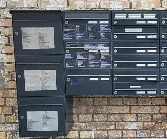 Für bestehende Briefkastenanlagen bietet PAKETIN eine einfache Lösung zur Nachrüstung: einklickbare Rahmen, die mühelos von vorne in die vorhandenen Öffnungen eingesetzt werden. Die digitalen Schilder werden von innen fixiert – für eine sichere, moderne und elegante Beschriftung ohne großen Aufwand.